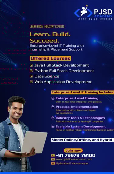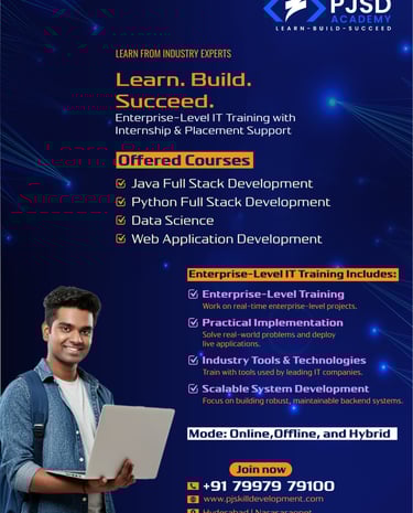 At PJ Skill Development Academy, we prepare students for IT careers through hands-on training and real-world projects in Java development.